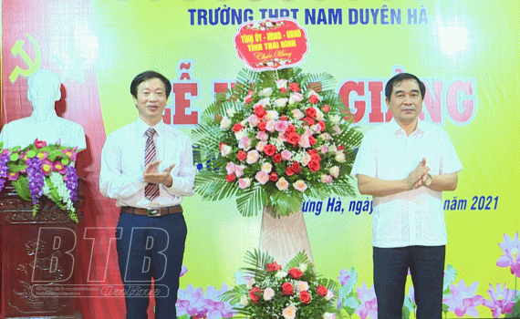 Đồng chí Nguyễn Tiến Thành, Phó Bí thư thường trực Tỉnh ủy, Chủ tịch HĐND tỉnh dự khai giảng năm học mới tại Trường THPT Nam Duyên Hà