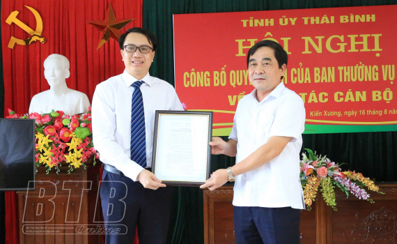 Chiều ngày 16/8, tại trụ sở Huyện ủy Kiến Xương, Thường trực Tỉnh ủy tổ chức hội nghị công bố Quyết định của Ban Thường vụ Tỉnh ủy về việc luân chuyển...