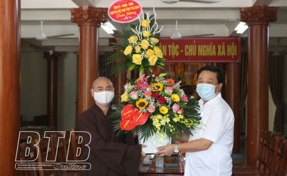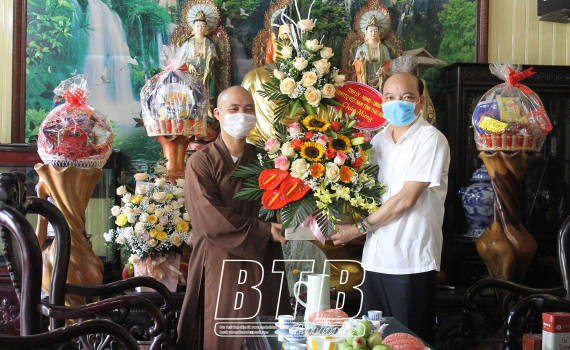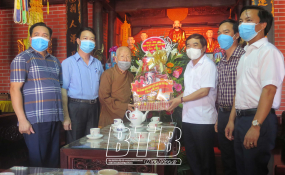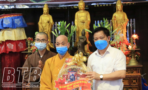 Các đồng chí lãnh đạo tỉnh thăm và chúc mừng tăng ni, Phật tử tại huyện Vũ Thư