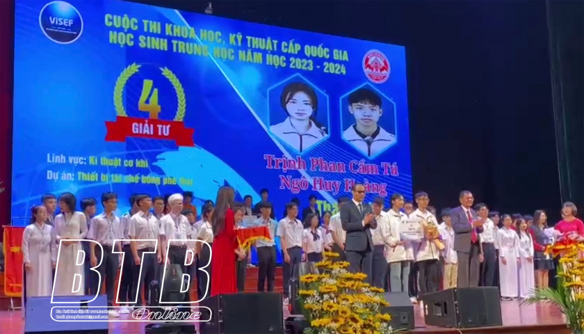 Chiều ngày 22/3, tại lễ bế mạc cuộc thi khoa học kỹ thuật cấp quốc gia học sinh trung học năm học 2023-2024, Thái Bình có 1 dự án đạt giải tư và được nhận...
