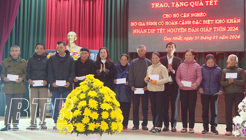 Trao 150 suất quà tết cho hộ cận nghèo và hộ khó khăn xã Duy Nhất