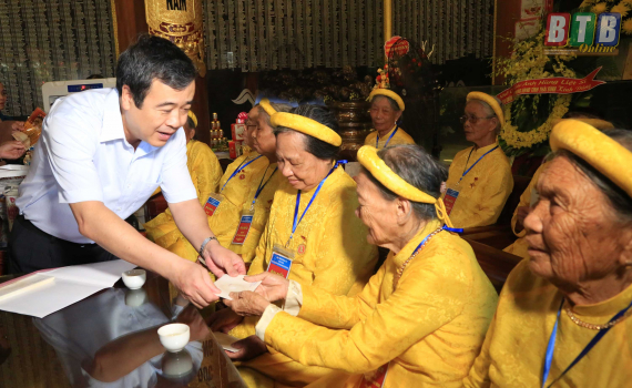 Đồng chí Phó Bí thư Tỉnh ủy, Chủ tịch UBND tỉnh thăm, tặng quà người có công tiêu biểu tại huyện Đông Hưng