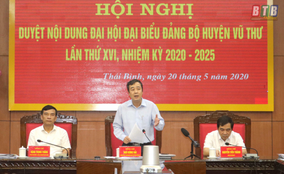 Sáng ngày 20/5, Ban Thường vụ Tỉnh uỷ tổ chức hội nghị duyệt nội dung Đại hội đại biểu Đảng bộ huyện Vũ Thư lần thứ XVI, nhiệm kỳ 2020 - 2025.