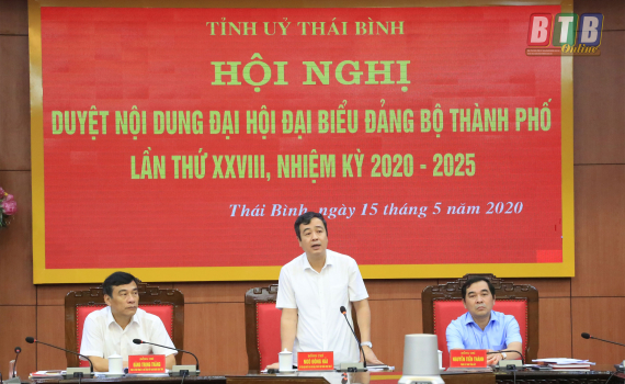 Sáng ngày 15/5, Ban Thường vụ Tỉnh ủy tổ chức hội nghị duyệt nội dung Đại hội đại biểu Đảng bộ thành phố Thái Bình lần thứ XXVIII, nhiệm kỳ 2020 - 2025....