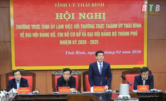 Thường trực Tỉnh ủy làm việc với Thường trực Huyện ủy Thái Thụy và Quỳnh Phụ về đại hội đảng bộ, chi bộ cơ sở và đại hội đảng bộ huyện