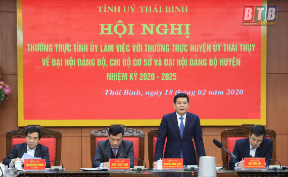 Sáng ngày 18/2, Thường trực Tỉnh ủy làm việc với Thường trực Huyện ủy Thái Thụy và Thường trực Huyện ủy Quỳnh Phụ về đại hội đảng bộ, chi bộ cơ sở và đại...