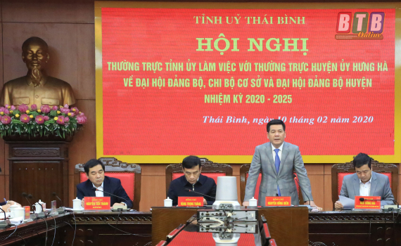 Chiều ngày 10/2, Thường trực Tỉnh ủy làm việc với Thường trực Huyện ủy Hưng Hà và Thường trực Huyện ủy Tiền Hải về đại hội đảng bộ, chi bộ cơ sở và công...