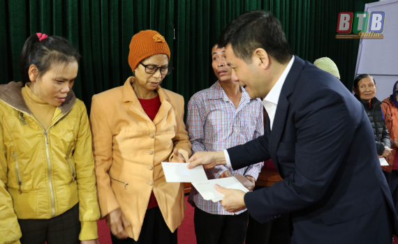 Đồng chí Bí thư Tỉnh ủy, Chủ tịch HĐND tỉnh trao quà cho hộ nghèo, hộ cận nghèo tại huyện Tiền Hải