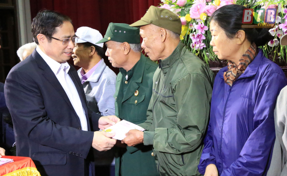 Đồng chí Phạm Minh Chính, Ủy viên Bộ Chính trị, Bí thư Trung ương Đảng, Trưởng ban Tổ chức Trung ương tặng quà tết cho nạn nhân nhiễm chất độc da cam trên địa bàn tỉnh