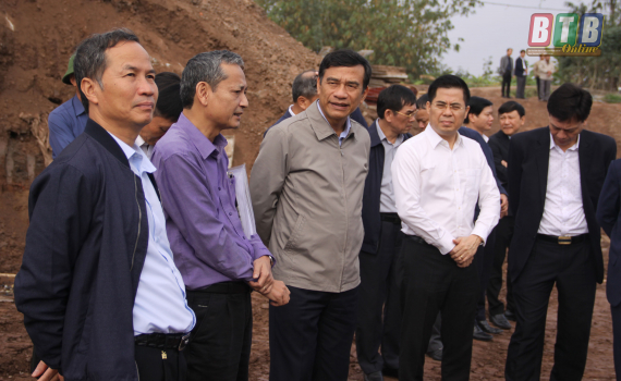 Đồng chí Đặng Trọng Thăng, Phó Bí thư Tỉnh ủy, Chủ tịch UBND tỉnh kiểm tra tiến độ thi công một số công trình trên địa bàn huyện Kiến Xương