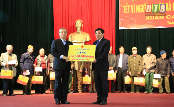 Đồng chí Trần Quốc Vượng, Ủy viên Bộ Chính trị, Thường trực Ban Bí thư tặng quà tết cho người nghèo và nạn nhân nhiễm chất độc da cam trên địa bàn tỉnh