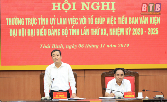 Thường trực Tỉnh ủy làm việc với Tổ giúp việc Tiểu ban Văn kiện Đại hội đại biểu Đảng bộ tỉnh lần thứ XX