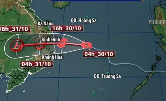 Bão số 5 vẫn đang hướng về đất liền Nam miền Trung, khả năng từ chiều đến đêm nay (30/10) bão sẽ đổ bộ.