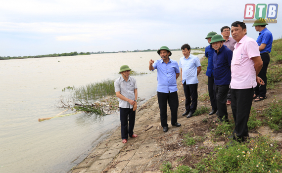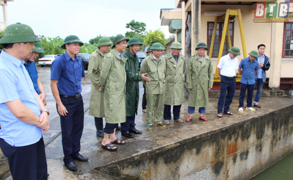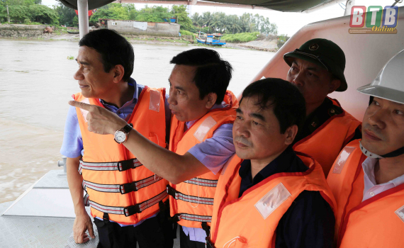 Đồng chí Phó Bí thư Tỉnh ủy, Chủ tịch UBND tỉnh kiểm tra công tác phòng, chống bão số 3 tại huyện Thái Thụy