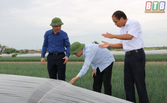Đồng chí Phó Bí thư Tỉnh ủy, Chủ tịch UBND tỉnh kiểm tra công tác phòng chống bão số 3 tại huyện Đông Hưng và Hưng Hà