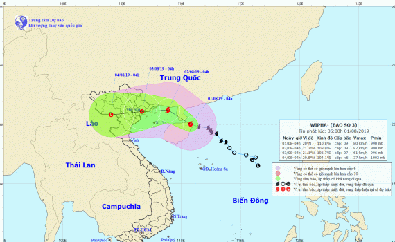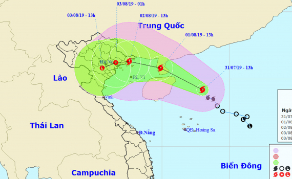 Hồi 04 giờ ngày 01/8, vị trí tâm bão ở vào khoảng 20,0 độ Vĩ Bắc; 110,8 độ Kinh Đông, trên khu vực phía Bắc đảo Hải Nam, cách đất liền các tỉnh Quảng...