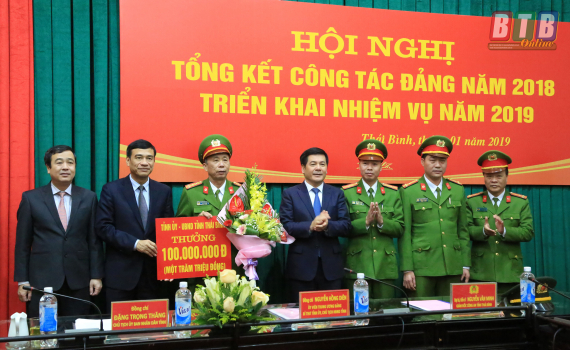 Các đồng chí lãnh đạo tỉnh chúc mừng lực lượng công an phá nhanh vụ cướp ngân hàng