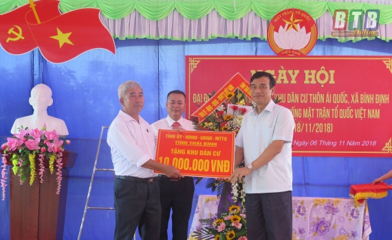 Chiều ngày 6/11, đồng chí Đặng Trọng Thăng, Phó Bí thư Tỉnh ủy, Chủ tịch UBND tỉnh tới dự ngày hội Đại đoàn kết toàn dân tộc ở thôn Ái Quốc, xã Bình Định...