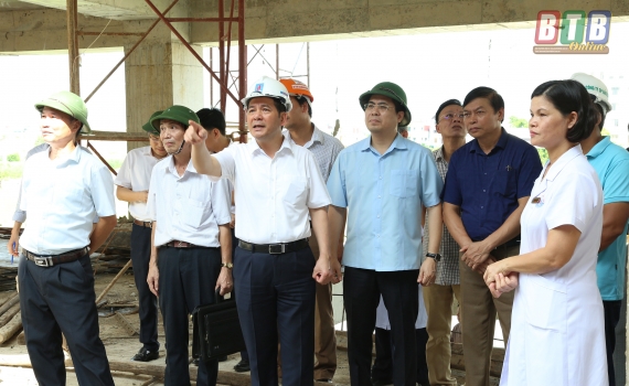 Đồng chí Nguyễn Hồng Diên, Ủy viên Trung ương Đảng, Bí thư Tỉnh ủy, Chủ tịch HĐND tỉnh kiểm tra tiến độ thi công dự án Bệnh viện Nhi Thái Bình
