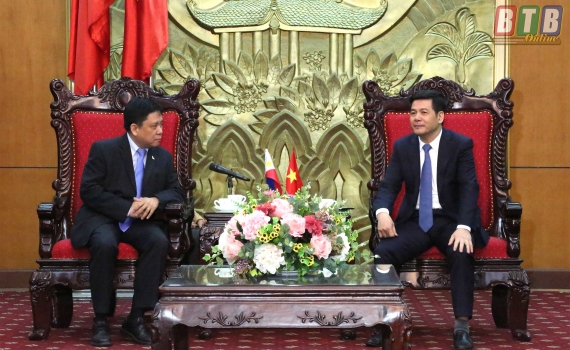Đồng chí Nguyễn Hồng Diên, Ủy viên Trung ương Đảng, Phó Bí thư Tỉnh ủy, Chủ tịch UBND tỉnh tiếp xã giao Đại sứ quán Phi-líp-pin