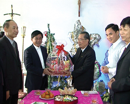 Các đồng chí lãnh đạo tỉnh Thăm, chúc mừng các vị chức sắc và đồng bào Công giáo