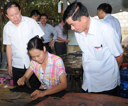 Đồng chí Bí thư Tỉnh ủy kiểm tra tình hình sản xuất kinh doanh ở một số làng nghề