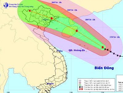 Hồi 13 giờ ngày 17/7, vị trí tâm bão ở vào khoảng 16,8 độ Vĩ Bắc; 115,0 độ Kinh Đông, cách quần đảo Hoàng Sa khoảng 300km về phía Đông. Sức gió mạnh nhất...
