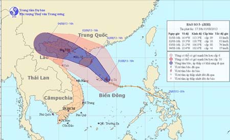 Trung tâm Dự báo Khí tượng Thủy Văn Trung ương: Hồi 16 giờ ngày 01/8, vị trí tâm bão ở vào khoảng 16,4 độ Vĩ Bắc; 113,3 độ Kinh Đông, trên khu vực phía...