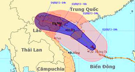 Theo tin của Trung tâm Dự báo Khí tượng Thủy văn Trung ương, hồi 13 giờ ngày 01/8/2013, vị trí tâm bão số 5 ở vào khoảng 16,1 độ Vĩ Bắc, 113,4 độ Kinh...