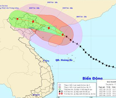 Hồi 16 giờ ngày 18/7, vị trí tâm bão ở vào khoảng 20,2 độ Vĩ Bắc; 110,7 độ Kinh Đông, cách Móng Cái (Quảng Ninh) khoảng 350km về phía Đông Đông Nam. Sức...