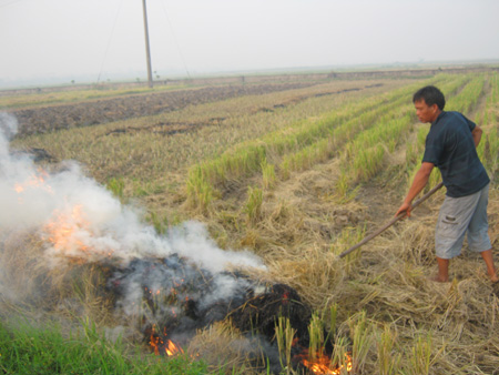 Mặc dù tiếng loa truyền thanh của xã Vũ Lạc (Thành phố Thái Bình) liên tục phát đi Công điện số 03/CĐ-UBND của UBND tỉnh về việc chỉ đạo không đốt rơm rạ...