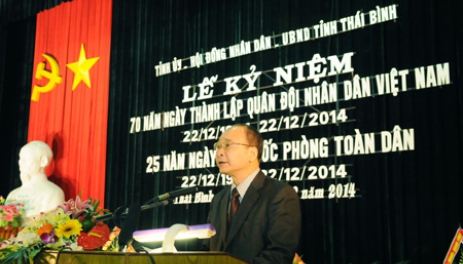 (Diễn văn kỷ niệm 70 năm ngày thành lập Quân đội nhân dân Việt Nam, 25 năm Ngày hội Quốc phòng toàn dân của đồng chí Phạm Văn Sinh, Phó Bí thư Tỉnh ủy,...