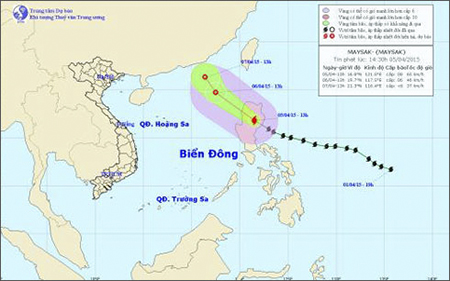 Khoảng tối 5/4 bão Maysak có khả năng đi vào vùng biển phía Đông Bắc khu vực Bắc Biển Đông và suy yếu dần thành áp thấp nhiệt đới.