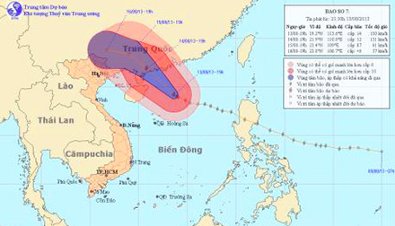 Theo tin của Trung tâm dự báo Khí tượng Thuỷ văn Trung ương: Hồi 16 giờ ngày 13/8, vị trí tâm bão số 7 (Utor) ở vào khoảng 19,0 độ Vĩ Bắc; 113,9 độ Kinh...