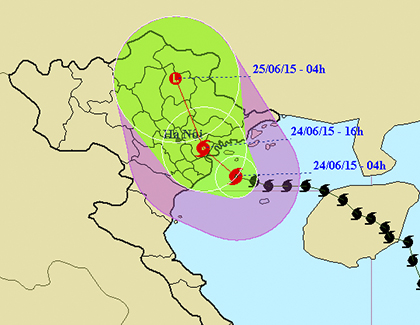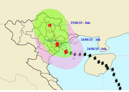 Theo tin từ Trung tâm dự báo Khí tượng Thủy văn Trung ương: Hồi 21 giờ ngày 23/6, vị trí tâm bão ở vào khoảng 20,1 độ Vĩ Bắc; 107,9 độ Kinh Đông, cách bờ...
