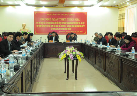 Trong hai ngày 10, 11/1, tại Hà Nội, Ban Dân vận Trung ương tổ chức hội nghị trực tuyến tổng kết công tác Dân vận năm 2013, triển khai nhiệm vụ năm...