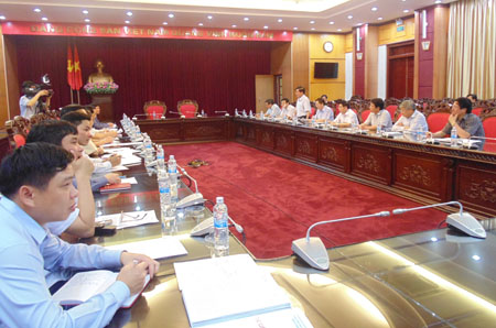 Thường trực Tỉnh ủy làm việc với Ðoàn công tác Tỉnh ủy Hòa Bình