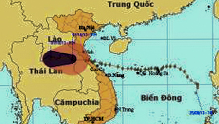 Dự báo trong 12 giờ tới, bão di chuyển theo hướng giữa Tây và Tây Tây Bắc, mỗi giờ đi được khoảng 20km, suy yếu dần thành áp thấp nhiệt đới, sau đó...