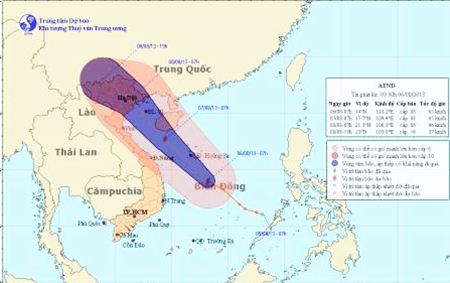 Theo tin của Trung tâm dự báo Khí tượng Thủy văn Trung ương: Hồi 01 giờ ngày 06/8, vị trí tâm áp thấp nhiệt đới ở vào khoảng 13,2 độ Vĩ Bắc; 114,6 độ Kinh...