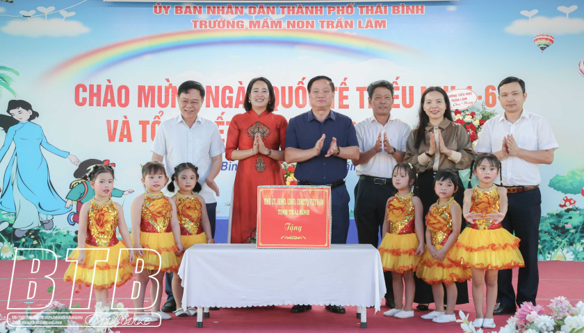 Nhân ngày Quốc tế thiếu nhi 1/6, sáng ngày 30/5, đồng chí Nguyễn Khắc Thận, Bí thư Tỉnh ủy đến thăm, tặng quà các cháu thiếu nhi tại Trường Mầm non Trần...