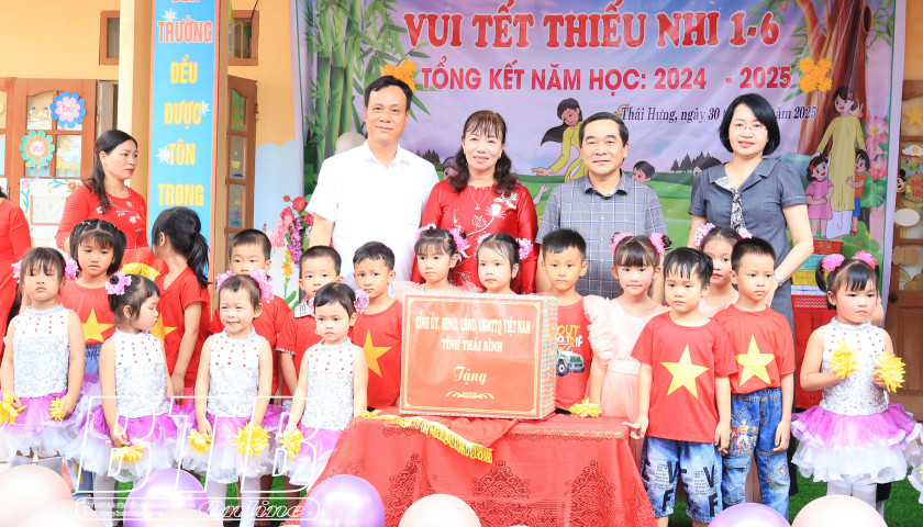 Đồng chí Nguyễn Mạnh Hùng, Phó Bí thư Tỉnh ủy, Chủ tịch UBND tỉnh thăm, tặng quà trẻ em nhân ngày Quốc tế thiếu nhi 1/6 tại huyện Quỳnh Phụ