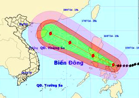Hồi 13 giờ ngày 15/7, vị trí tâm bão Rammasun ở vào khoảng 12,9 độ Vĩ Bắc; 124,7 độ Kinh Đông, trên bờ biển phía Đông miền Trung Philippin. Sức gió mạnh...