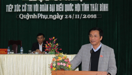 Sau kỳ họp thứ hai Quốc hội khóa XIV, ngày 24/11, Ðoàn đại biểu Quốc hội tỉnh đã có buổi tiếp xúc với cử tri các huyện Kiến Xương, Tiền Hải, Ðông Hưng,...