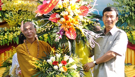 Ðồng chí Ðặng Trọng Thăng, Phó Bí thư thường trực Tỉnh ủy, Chủ tịch HÐND tỉnh thăm, chúc mừng tăng ni, Phật tử chùa Từ Xuyên
