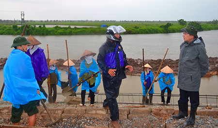 Các đồng chí lãnh đạo tỉnh kiểm tra và chỉ đạo công tác phòng chống bão số 6