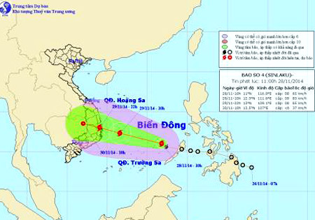 Đêm hôm qua (27/11), áp thấp nhiệt đới đã đi vào vùng biển phía Đông Nam Biển Đông và sáng nay (28/11) đã mạnh lên thành bão, cơn bão số 4 và có tên quốc...