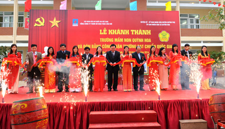 Đồng chí Hoàng Trung Hải, Ủy viên Trung ương Đảng, Phó Thủ tướng Chính phủ dự lễ khánh thành Trường Mầm non xã Quỳnh Hoa