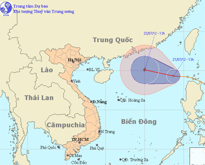 Theo thông tin của Trung tâm dự báo Khí tượng Thủy văn Trung ương, hồi 13 giờ ngày 21/7, vị trí tâm áp thấp nhiệt đới (ATNĐ) ở vào khoảng 19,3 độ Vĩ Bắc;...