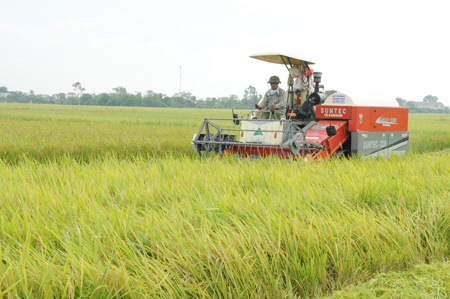 Tiền Hải Nông dân bắt đầu thu hoạch lúa xuân