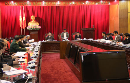 Mừng xuân Ất Mùi 2015, sáng ngày 27/2, Tỉnh ủy, HĐND, UBND tỉnh tổ chức gặp mặt cán bộ, phóng viên các cơ quan báo chí, đại biểu văn nghệ sĩ đang làm việc...